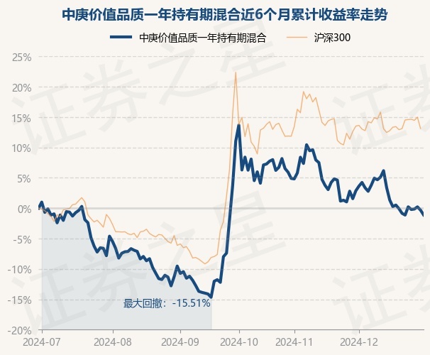 证券之星消息,12月31日,中庚价值品质一年持有期混合最新单位净值为1.4088元,累计净值为1.4088元,较前一交易日下跌0.8%。历史数据显示该基金近1个月下跌3.86%,近3个月下跌10.94%,近6个月下跌1.11%,近1年上涨0.23%。该基金近6个月的累计收益率走势如下图:
