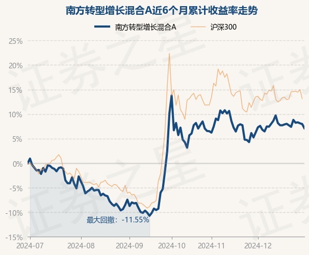 证券之星消息,12月31日,南方转型增长混合A最新单位净值为1.9071元,累计净值为1.9071元,较前一交易日下跌0.79%。历史数据显示该基金近1个月上涨0.8%,近3个月下跌2.75%,近6个月上涨7.12%,近1年上涨10.88%。该基金近6个月的累计收益率走势如下图: