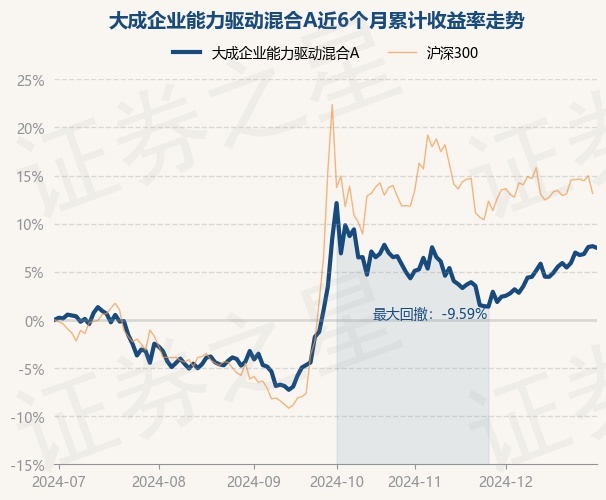 证券之星消息,12月31日,大成企业能力驱动混合A最新单位净值为0.9575元,累计净值为0.9575元,较前一交易日下跌0.16%。历史数据显示该基金近1个月上涨4.95%,近3个月下跌0.88%,近6个月上涨7.49%,近1年上涨20.47%。该基金近6个月的累计收益率走势如下图: