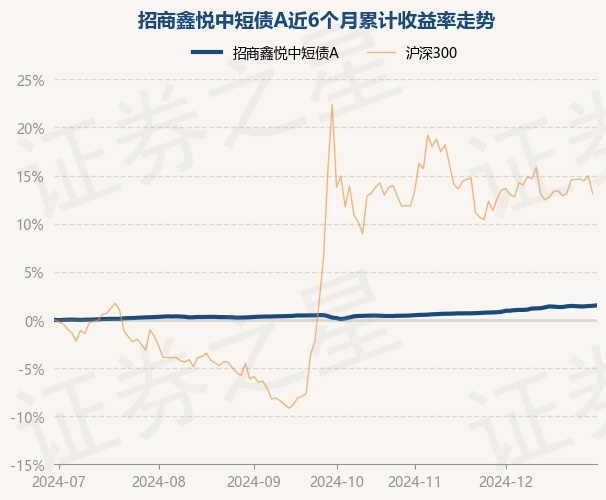 证券之星消息,12月31日,招商鑫悦中短债A最新单位净值为1.1544元,累计净值为1.2303元,较前一交易日上涨0.05%。历史数据显示该基金近1个月上涨0.66%,近3个月上涨1.27%,近6个月上涨1.51%,近1年上涨3.38%。该基金近6个月的累计收益率走势如下图: