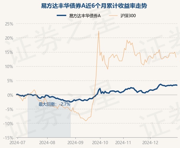 证券之星消息,12月31日,易方达丰华债券A最新单位净值为1.3121元,累计净值为1.5262元,较前一交易日下跌0.14%。历史数据显示该基金近1个月上涨1.86%,近3个月上涨1.6%,近6个月上涨3.28%,近1年上涨5.51%。该基金近6个月的累计收益率走势如下图: