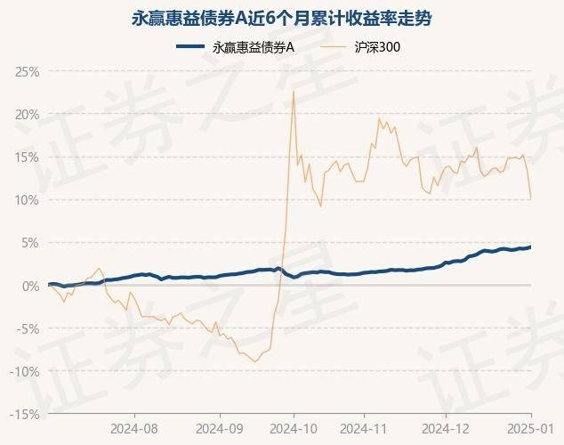 证券之星消息,1月2日,永赢惠益债券A最新单位净值为1.1253元,累计净值为1.2873元,较前一交易日上涨0.13%。历史数据显示该基金近1个月上涨1.77%,近3个月上涨3.3%,近6个月上涨4.41%,近1年上涨7.94%。该基金近6个月的累计收益率走势如下图: