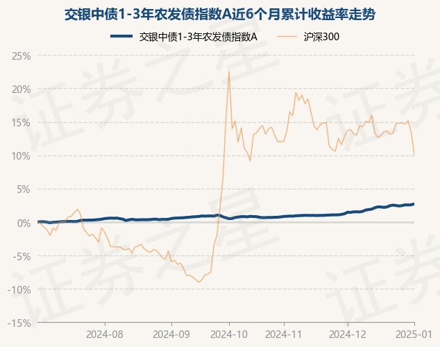 证券之星消息,1月2日,交银中债1-3年农发债指数A最新单位净值为1.0194元,累计净值为1.1974元,较前一交易日上涨0.11%。历史数据显示该基金近1个月上涨1.22%,近3个月上涨2.06%,近6个月上涨2.7%,近1年上涨5.05%。该基金近6个月的累计收益率走势如下图: