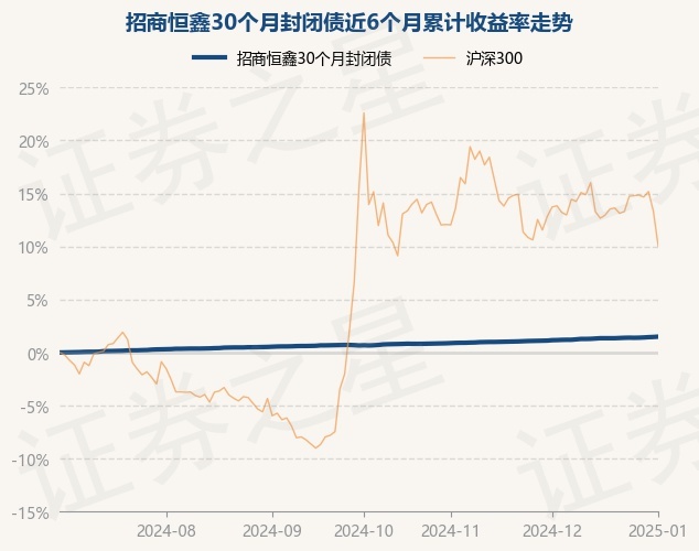 证券之星消息,1月2日,招商恒鑫30个月封闭债最新单位净值为1.0373元,累计净值为1.0592元,较前一交易日上涨0.03%。历史数据显示该基金近1个月上涨0.33%,近3个月上涨0.83%,近6个月上涨1.5%,近1年上涨3.38%。该基金近6个月的累计收益率走势如下图: