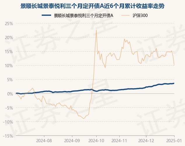 证券之星消息,1月2日,景顺长城景泰悦利三个月定开债A最新单位净值为1.0535元,累计净值为1.1256元,较前一交易日上涨0.1%。历史数据显示该基金近1个月上涨1.28%,近3个月上涨2.67%,近6个月上涨3.6%,近1年上涨7.15%。该基金近6个月的累计收益率走势如下图: