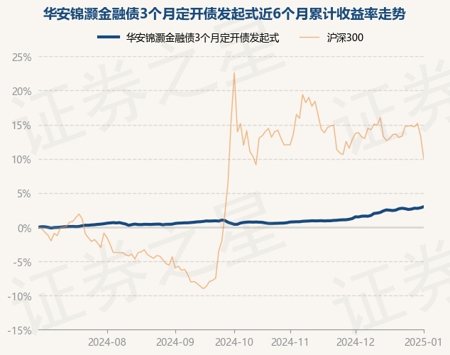 证券之星消息,1月2日,华安锦灏金融债3个月定开债发起式最新单位净值为1.0578元,累计净值为1.1318元,较前一交易日上涨0.15%。历史数据显示该基金近1个月上涨1.46%,近3个月上涨2.42%,近6个月上涨2.99%,近1年上涨5.63%。该基金近6个月的累计收益率走势如下图: