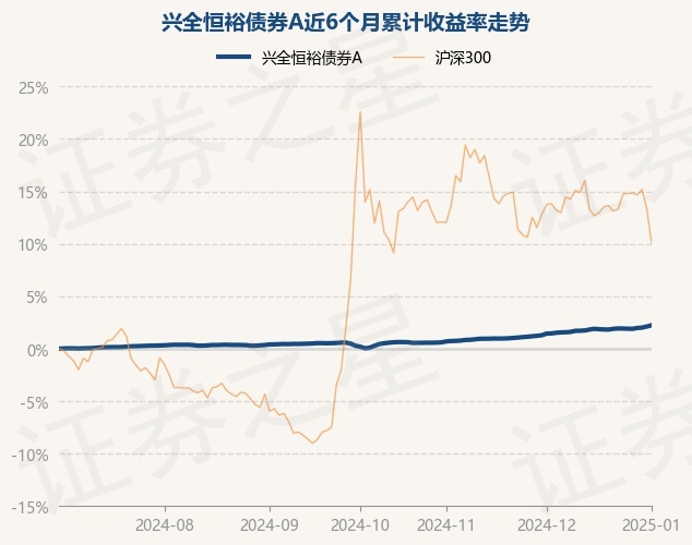 证券之星消息,1月2日,兴全恒裕债券A最新单位净值为1.1657元,累计净值为1.2217元,较前一交易日上涨0.12%。历史数据显示该基金近1个月上涨0.79%,近3个月上涨1.95%,近6个月上涨2.24%,近1年上涨4.51%。该基金近6个月的累计收益率走势如下图:
