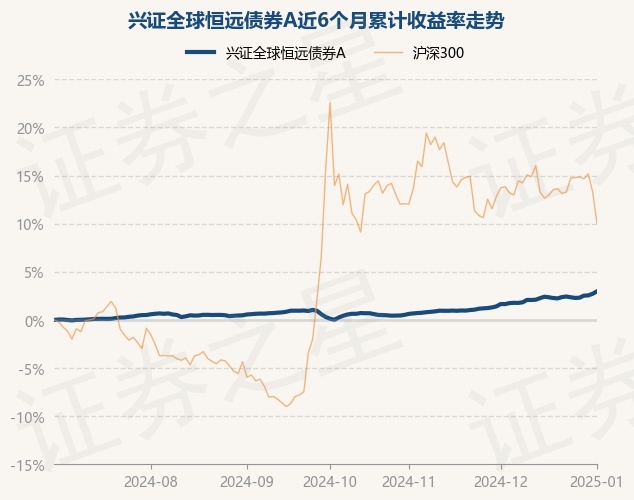 证券之星消息,1月2日,兴证全球恒远债券A最新单位净值为1.0553元,累计净值为1.0753元,较前一交易日上涨0.25%。历史数据显示该基金近1个月上涨1.3%,近3个月上涨2.66%,近6个月上涨2.97%,近1年上涨5.68%。该基金近6个月的累计收益率走势如下图: