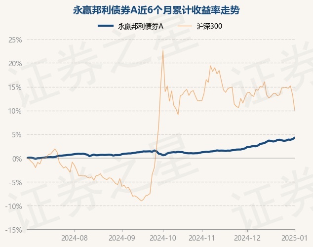 证券之星消息,1月2日,永赢邦利债券A最新单位净值为1.126元,累计净值为1.211元,较前一交易日上涨0.27%。历史数据显示该基金近1个月上涨1.9%,近3个月上涨3.41%,近6个月上涨4.26%,近1年上涨7.34%。该基金近6个月的累计收益率走势如下图:
