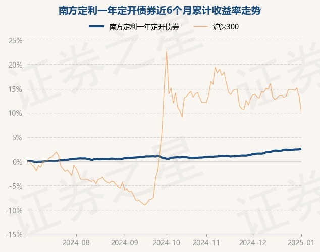 证券之星消息,1月2日,南方定利一年定开债券最新单位净值为1.079元,累计净值为1.109元,较前一交易日上涨0.1%。历史数据显示该基金近1个月上涨1.07%,近3个月上涨1.93%,近6个月上涨2.58%,近1年上涨4.87%。该基金近6个月的累计收益率走势如下图: