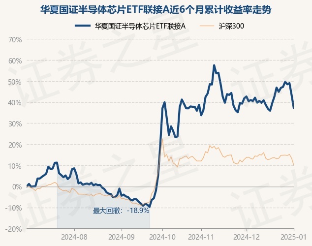 证券之星消息,1月2日,华夏国证半导体芯片ETF联接A最新单位净值为1.0481元,累计净值为1.0481元,较前一交易日下跌4.3%。历史数据显示该基金近1个月下跌3.86%,近3个月上涨14.33%,近6个月上涨37.19%,近1年上涨25.18%。该基金近6个月的累计收益率走势如下图: