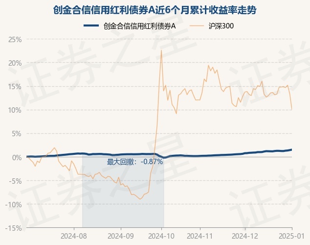 证券之星消息,1月2日,创金合信信用红利债券A最新单位净值为1.3075元,累计净值为1.3075元,较前一交易日上涨0.08%。历史数据显示该基金近1个月上涨0.74%,近3个月上涨1.34%,近6个月上涨1.5%,近1年上涨4.78%。该基金近6个月的累计收益率走势如下图: