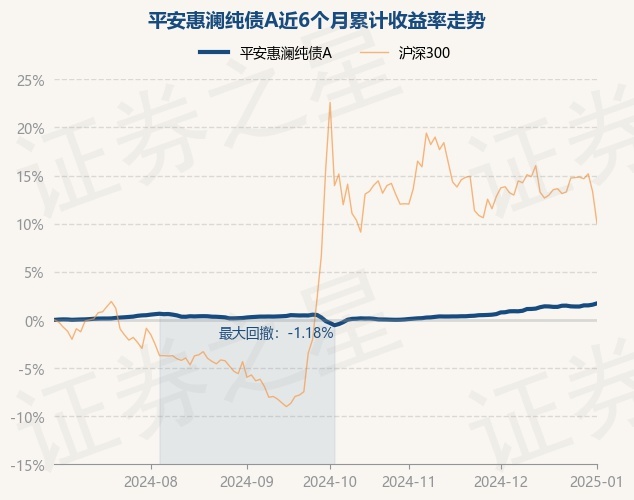 证券之星消息,1月2日,平安惠澜纯债A最新单位净值为1.1264元,累计净值为1.2114元,较前一交易日上涨0.13%。历史数据显示该基金近1个月上涨0.93%,近3个月上涨1.84%,近6个月上涨1.72%,近1年上涨4.46%。该基金近6个月的累计收益率走势如下图: