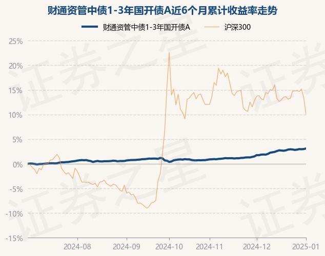 证券之星消息,1月2日,财通资管中债1-3年国开债A最新单位净值为1.0422元,累计净值为1.1202元,较前一交易日上涨0.12%。历史数据显示该基金近1个月上涨1.32%,近3个月上涨2.46%,近6个月上涨3.11%,近1年上涨5.41%。该基金近6个月的累计收益率走势如下图: