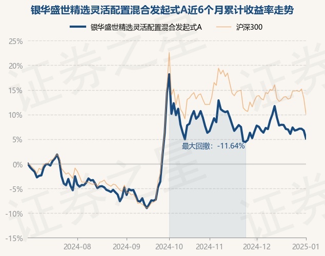 证券之星消息,1月2日,银华盛世精选灵活配置混合发起式A最新单位净值为1.5332元,累计净值为2.0193元,较前一交易日下跌1.53%。历史数据显示该基金近1个月下跌2.44%,近3个月下跌8.16%,近6个月上涨5.11%,近1年下跌1.16%。该基金近6个月的累计收益率走势如下图: