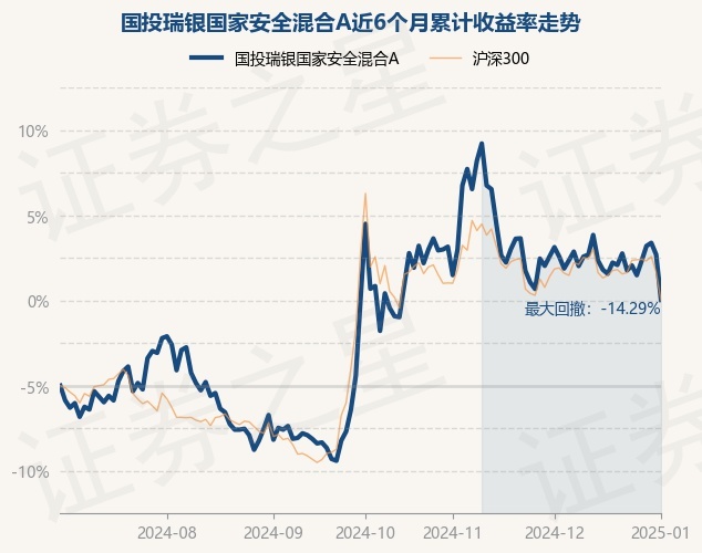 证券之星消息,1月2日,国投瑞银国家安全混合A最新单位净值为1.0249元,累计净值为1.1839元,较前一交易日下跌4.61%。历史数据显示该基金近1个月下跌5.32%,近3个月下跌0.2%,近6个月上涨10.09%,近1年上涨3.32%。该基金近6个月的累计收益率走势如下图: