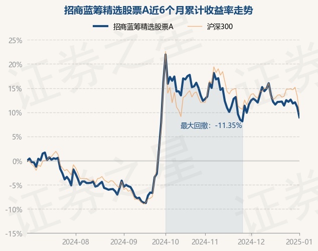 证券之星消息,1月2日,招商蓝筹精选股票A最新单位净值为0.6342元,累计净值为0.6342元,较前一交易日下跌1.92%。历史数据显示该基金近1个月下跌3.13%,近3个月下跌6.32%,近6个月上涨8.95%,近1年上涨5.28%。该基金近6个月的累计收益率走势如下图: