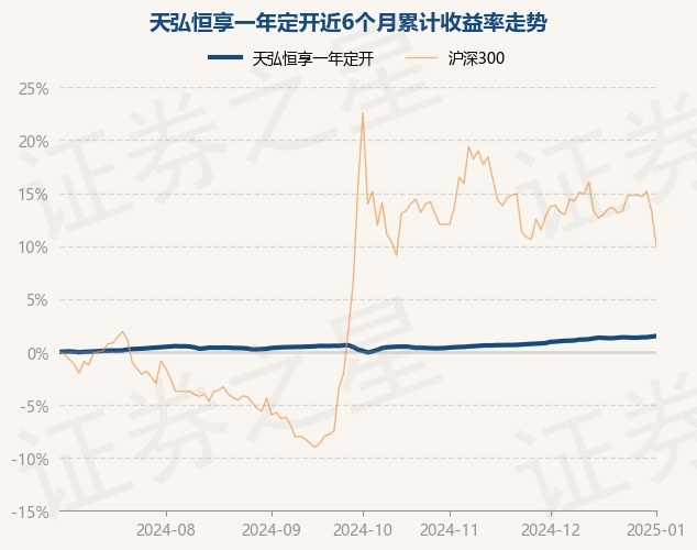 证券之星消息,1月2日,天弘恒享一年定开最新单位净值为1.1426元,累计净值为1.1426元,较前一交易日上涨0.06%。历史数据显示该基金近1个月上涨0.55%,近3个月上涨1.29%,近6个月上涨1.5%,近1年上涨3.74%。该基金近6个月的累计收益率走势如下图: