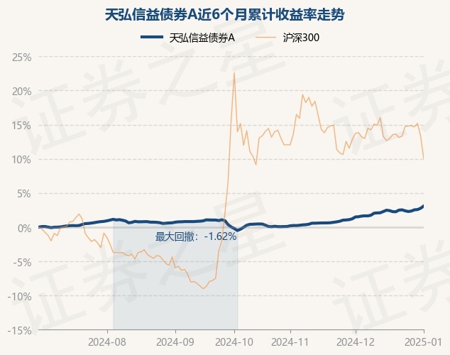 证券之星消息,1月2日,天弘信益债券A最新单位净值为1.0908元,累计净值为1.1856元,较前一交易日上涨0.32%。历史数据显示该基金近1个月上涨1.57%,近3个月上涨3.06%,近6个月上涨3.09%,近1年上涨6.26%。该基金近6个月的累计收益率走势如下图: