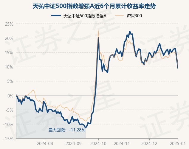 证券之星消息,1月2日,天弘中证500指数增强A最新单位净值为1.1322元,累计净值为1.1322元,较前一交易日下跌3.06%。历史数据显示该基金近1个月下跌4.63%,近3个月下跌2.72%,近6个月上涨9.59%,近1年上涨7.57%。该基金近6个月的累计收益率走势如下图:
