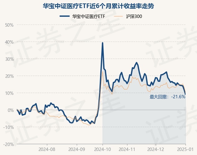 证券之星消息,1月2日,华宝中证医疗ETF最新单位净值为0.319元,累计净值为0.957元,较前一交易日下跌2.36%。历史数据显示该基金近1个月下跌8.12%,近3个月下跌12.48%,近6个月上涨9.21%,近1年下跌17.21%。该基金近6个月的累计收益率走势如下图: