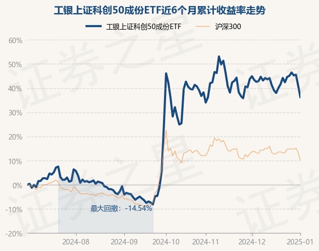 证券之星消息,1月2日,工银上证科创50成份ETF最新单位净值为0.9829元,累计净值为0.6849元,较前一交易日下跌3.39%。历史数据显示该基金近1个月下跌5.99%,近3个月上涨9.41%,近6个月上涨36.25%,近1年上涨13.54%。该基金近6个月的累计收益率走势如下图: