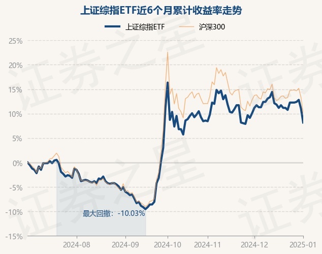 证券之星消息,1月2日,上证综指ETF最新单位净值为0.794元,累计净值为1.658元,较前一交易日下跌2.58%。历史数据显示该基金近1个月下跌2.7%,近3个月下跌2.7%,近6个月上涨8.17%,近1年上涨9.37%。该基金近6个月的累计收益率走势如下图: