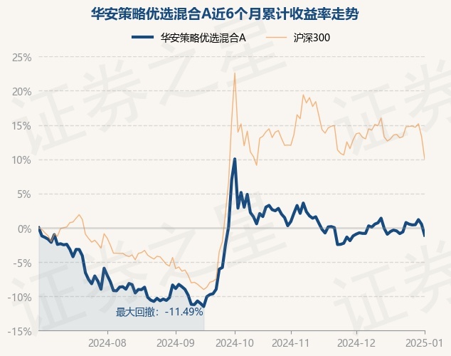 证券之星消息,1月2日,华安策略优选混合A最新单位净值为1.7791元,累计净值为3.3154元,较前一交易日下跌1.61%。历史数据显示该基金近1个月下跌0.17%,近3个月下跌7.56%,近6个月下跌1.1%,近1年上涨5.32%。该基金近6个月的累计收益率走势如下图: