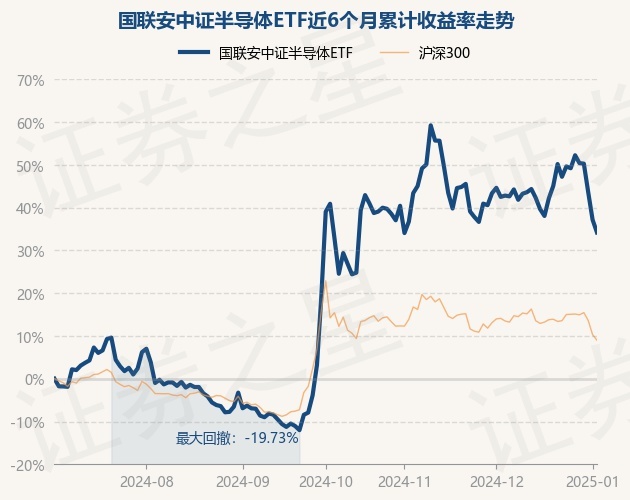 证券之星消息,1月3日,国联安中证半导体ETF最新单位净值为0.9423元,累计净值为1.8846元,较前一交易日下跌2.16%。历史数据显示该基金近1个月下跌5.84%,近3个月上涨12.49%,近6个月上涨34.19%,近1年上涨21.63%。该基金近6个月的累计收益率走势如下图:
