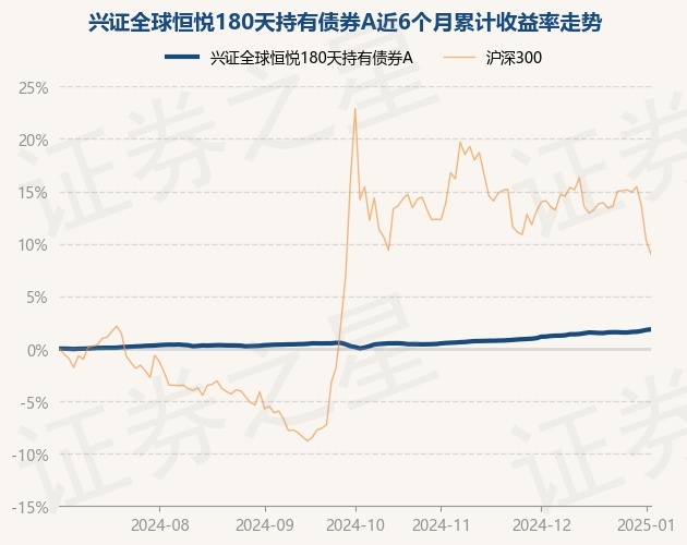 证券之星消息,1月3日,兴证全球恒悦180天持有债券A最新单位净值为1.1337元,累计净值为1.1337元,较前一交易日上涨0.05%。历史数据显示该基金近1个月上涨0.67%,近3个月上涨1.6%,近6个月上涨1.84%,近1年上涨4.26%。该基金近6个月的累计收益率走势如下图:
