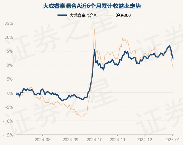 证券之星消息,1月3日,大成睿享混合A最新单位净值为1.4998元,累计净值为1.7141元,较前一交易日下跌1.08%。历史数据显示该基金近1个月下跌0.86%,近3个月上涨0.58%,近6个月上涨12.07%,近1年上涨13.61%。该基金近6个月的累计收益率走势如下图: