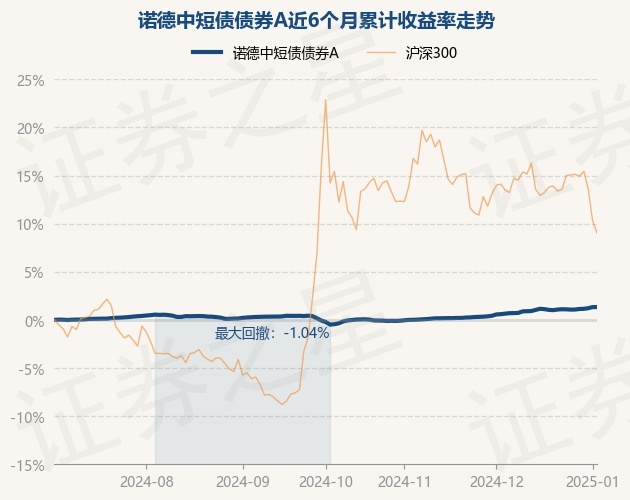 证券之星消息,1月3日,诺德中短债债券A最新单位净值为1.0903元,累计净值为1.0903元,较前一交易日上涨0.0%。历史数据显示该基金近1个月上涨0.79%,近3个月上涨1.45%,近6个月上涨1.39%,近1年上涨4.03%。该基金近6个月的累计收益率走势如下图: