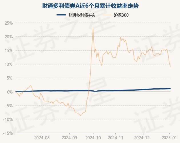 证券之星消息,1月3日,财通多利债券A最新单位净值为1.1384元,累计净值为1.1384元,较前一交易日上涨0.0%。历史数据显示该基金近1个月上涨0.32%,近3个月上涨0.81%,近6个月上涨1.05%,近1年上涨2.62%。该基金近6个月的累计收益率走势如下图: