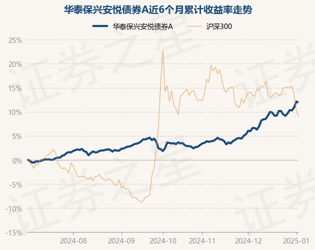 证券之星消息,1月3日,华泰保兴安悦债券A最新单位净值为1.164元,累计净值为1.325元,较前一交易日下跌0.12%。历史数据显示该基金近1个月上涨5.67%,近3个月上涨9.52%,近6个月上涨11.99%,近1年上涨19.29%。该基金近6个月的累计收益率走势如下图: