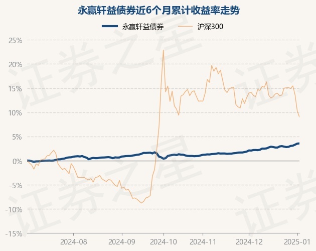 证券之星消息,1月3日,永赢轩益债券最新单位净值为1.0612元,累计净值为1.1342元,较前一交易日上涨0.05%。历史数据显示该基金近1个月上涨1.45%,近3个月上涨2.87%,近6个月上涨3.56%,近1年上涨7.12%。该基金近6个月的累计收益率走势如下图: