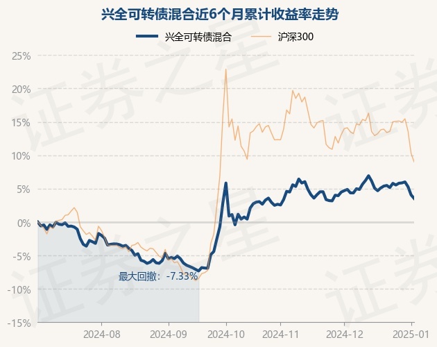 证券之星消息,1月3日,兴全可转债混合最新单位净值为1.0556元,累计净值为4.0976元,较前一交易日下跌0.52%。历史数据显示该基金近1个月下跌1.29%,近3个月上涨0.6%,近6个月上涨3.53%,近1年上涨5.57%。该基金近6个月的累计收益率走势如下图: