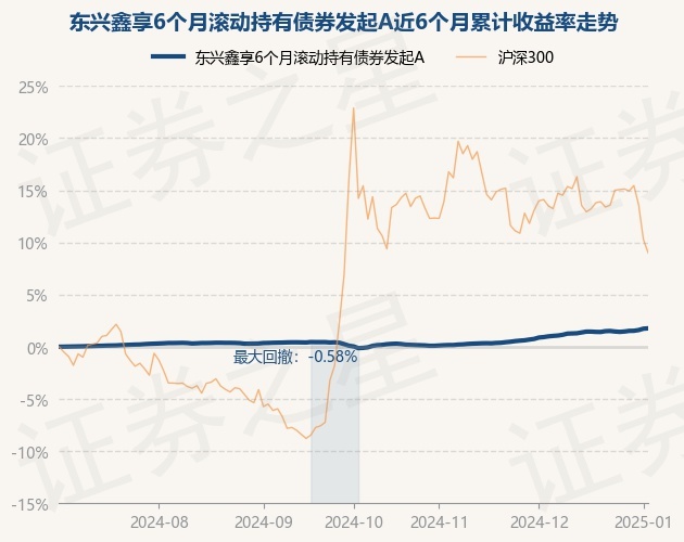 证券之星消息,1月3日,东兴鑫享6个月滚动持有债券发起A最新单位净值为1.1627元,累计净值为1.1627元,较前一交易日上涨0.03%。历史数据显示该基金近1个月上涨0.83%,近3个月上涨1.66%,近6个月上涨1.77%,近1年上涨3.54%。该基金近6个月的累计收益率走势如下图: