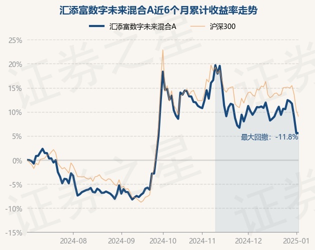 证券之星消息,1月3日,汇添富数字未来混合A最新单位净值为0.5878元,累计净值为0.5878元,较前一交易日上涨0.0%。历史数据显示该基金近1个月下跌4.62%,近3个月下跌6.28%,近6个月上涨5.06%,近1年上涨6.58%。该基金近6个月的累计收益率走势如下图: