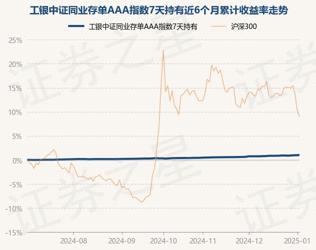 证券之星消息,1月3日,工银中证同业存单AAA指数7天持有最新单位净值为1.0544元,累计净值为1.0544元,较前一交易日上涨0.03%。历史数据显示该基金近1个月上涨0.26%,近3个月上涨0.68%,近6个月上涨1.02%,近1年上涨2.32%。该基金近6个月的累计收益率走势如下图: