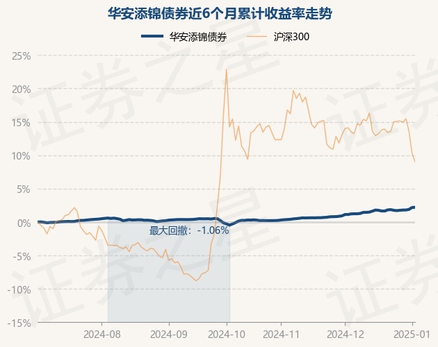 证券之星消息,1月3日,华安添锦债券最新单位净值为1.0584元,累计净值为1.0764元,较前一交易日上涨0.04%。历史数据显示该基金近1个月上涨1.07%,近3个月上涨2.34%,近6个月上涨2.21%,近1年上涨4.88%。该基金近6个月的累计收益率走势如下图: