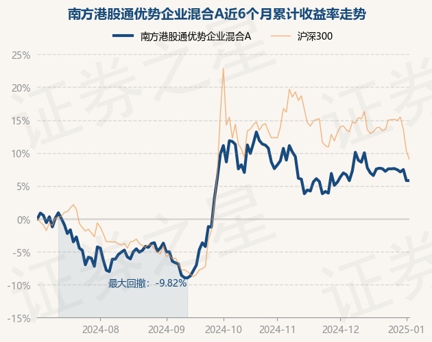 证券之星消息,1月3日,南方港股通优势企业混合A最新单位净值为0.8101元,累计净值为0.8101元,较前一交易日上涨0.0%。历史数据显示该基金近1个月下跌1.17%,近3个月下跌3.73%,近6个月上涨5.72%,近1年上涨14.53%。该基金近6个月的累计收益率走势如下图: