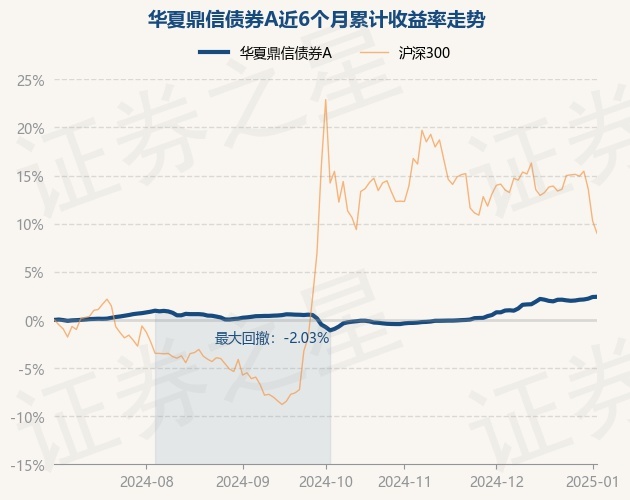 证券之星消息,1月3日,华夏鼎信债券A最新单位净值为1.0604元,累计净值为1.1758元,较前一交易日上涨0.02%。历史数据显示该基金近1个月上涨1.6%,近3个月上涨2.9%,近6个月上涨2.4%,近1年上涨5.91%。该基金近6个月的累计收益率走势如下图: