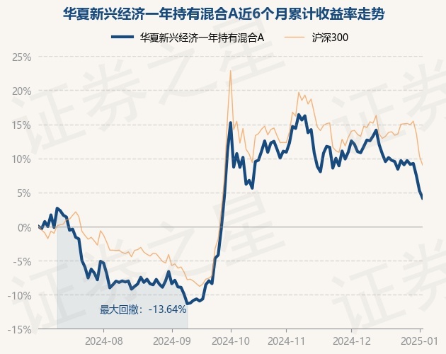 证券之星消息,1月3日,华夏新兴经济一年持有混合A最新单位净值为0.8868元,累计净值为0.8868元,较前一交易日下跌1.02%。历史数据显示该基金近1个月下跌7.04%,近3个月下跌6.24%,近6个月上涨4.16%,近1年上涨11.27%。该基金近6个月的累计收益率走势如下图: