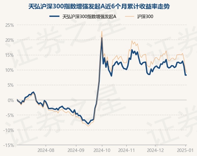 证券之星消息,1月3日,天弘沪深300指数增强发起A最新单位净值为1.1859元,累计净值为1.1859元,较前一交易日上涨0.0%。历史数据显示该基金近1个月下跌3.85%,近3个月下跌6.64%,近6个月上涨6.96%,近1年上涨11.66%。该基金近6个月的累计收益率走势如下图: