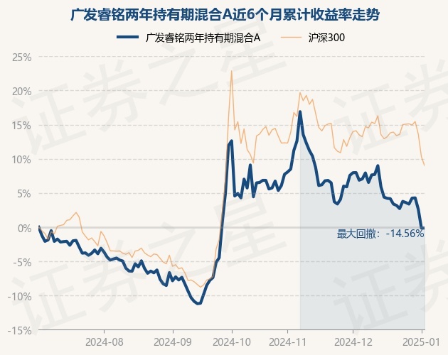 证券之星消息,1月3日,广发睿铭两年持有期混合A最新单位净值为0.9237元,累计净值为0.9237元,较前一交易日上涨0.0%。历史数据显示该基金近1个月下跌8.92%,近3个月下跌12.14%,近6个月下跌1.65%,近1年上涨11.49%。该基金近6个月的累计收益率走势如下图: