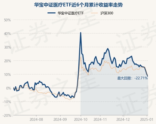 证券之星消息,1月3日,华宝中证医疗ETF最新单位净值为0.3145元,累计净值为0.9435元,较前一交易日下跌1.41%。历史数据显示该基金近1个月下跌9.26%,近3个月下跌13.72%,近6个月上涨8.6%,近1年下跌17.99%。该基金近6个月的累计收益率走势如下图: