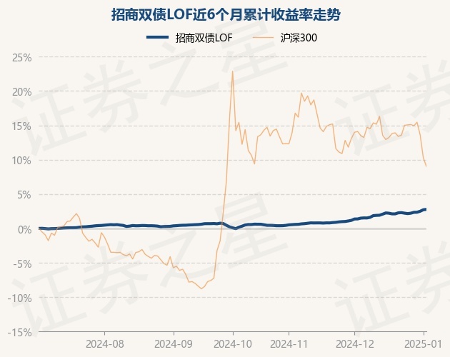 证券之星消息,1月3日,招商双债LOF最新单位净值为1.6022元,累计净值为1.7412元,较前一交易日上涨0.06%。历史数据显示该基金近1个月上涨1.37%,近3个月上涨2.54%,近6个月上涨2.77%,近1年上涨5.56%。该基金近6个月的累计收益率走势如下图: