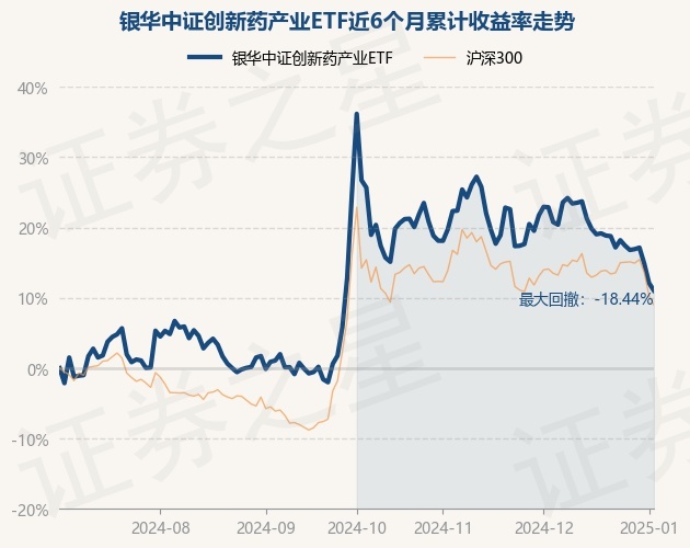 证券之星消息,1月3日,银华中证创新药产业ETF最新单位净值为0.6731元,累计净值为0.6731元,较前一交易日下跌0.94%。历史数据显示该基金近1个月下跌9.63%,近3个月下跌11.09%,近6个月上涨11.05%,近1年下跌17.18%。该基金近6个月的累计收益率走势如下图: