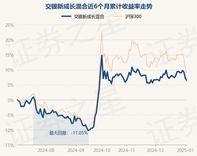 证券之星消息,1月3日,交银新成长混合最新单位净值为3.15元,累计净值为3.55元,较前一交易日下跌0.69%。历史数据显示该基金近1个月下跌0.28%,近3个月下跌2.93%,近6个月上涨6.45%,近1年上涨0.7%。该基金近6个月的累计收益率走势如下图: