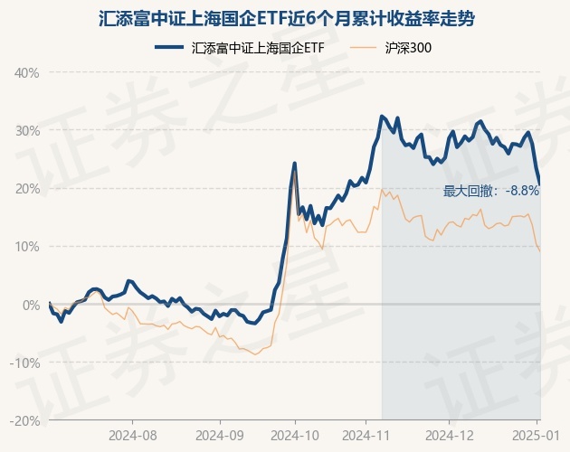 证券之星消息,1月3日,汇添富中证上海国企ETF最新单位净值为0.8289元,累计净值为0.9189元,较前一交易日下跌2.22%。历史数据显示该基金近1个月下跌6.96%,近3个月上涨0.54%,近6个月上涨20.61%,近1年上涨20.37%。该基金近6个月的累计收益率走势如下图: